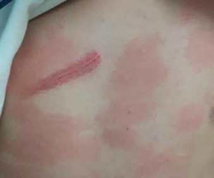 Vết sưng đỏ ở vùng ngực nạn nhân.