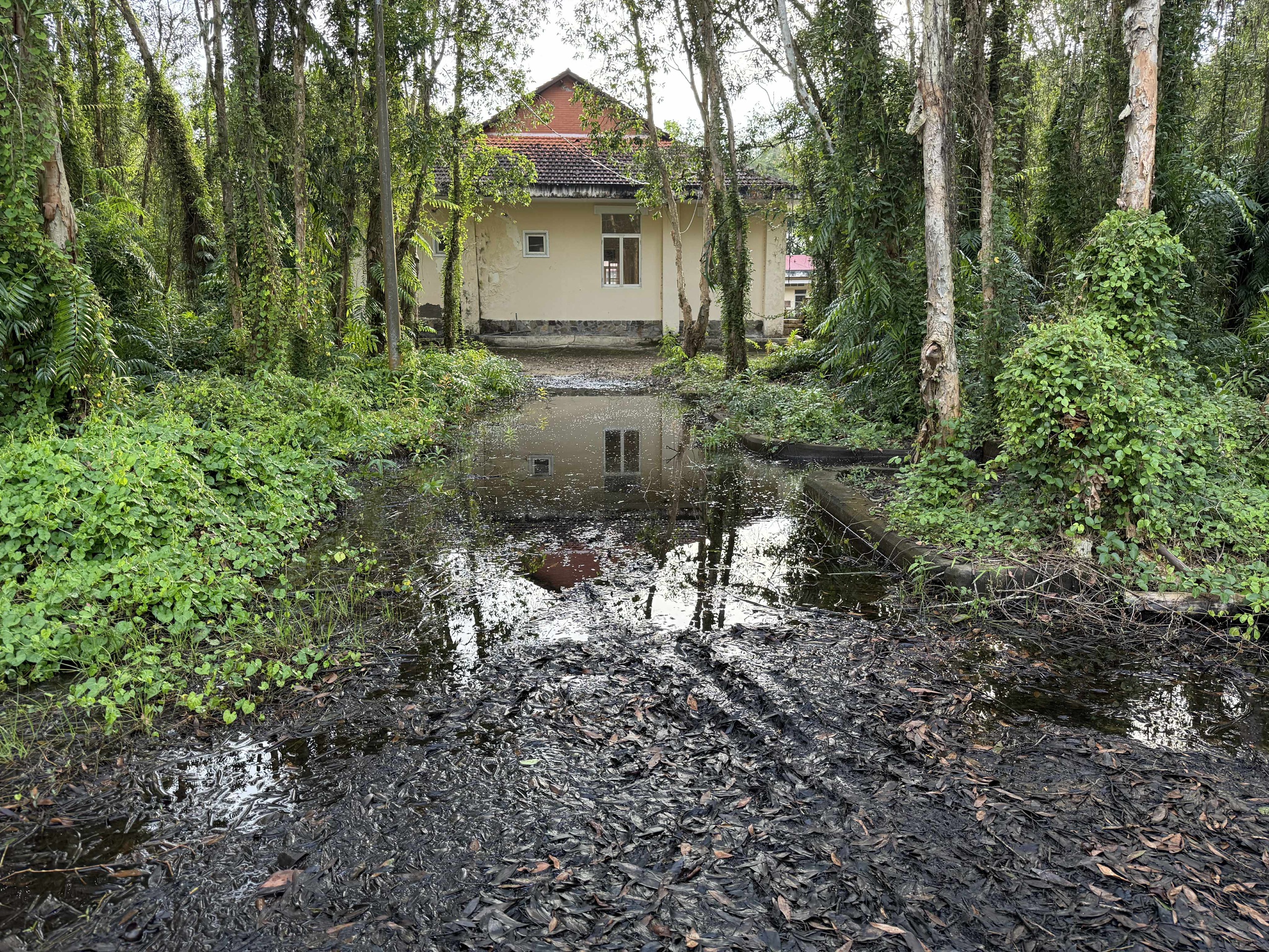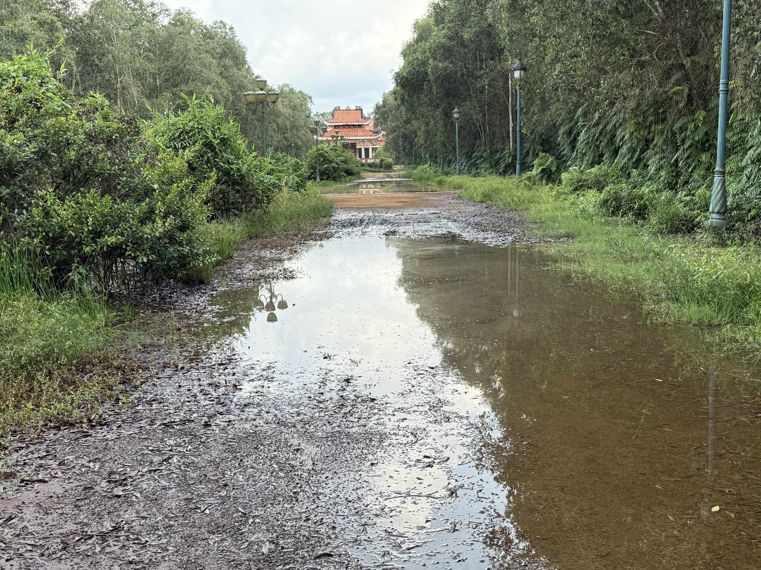 Từ đền tưởng niệm của khu di tích rất khó đi lại qua khu trưng bày vì sình lầy, ngập nước - Ảnh: KHẮC TÂM