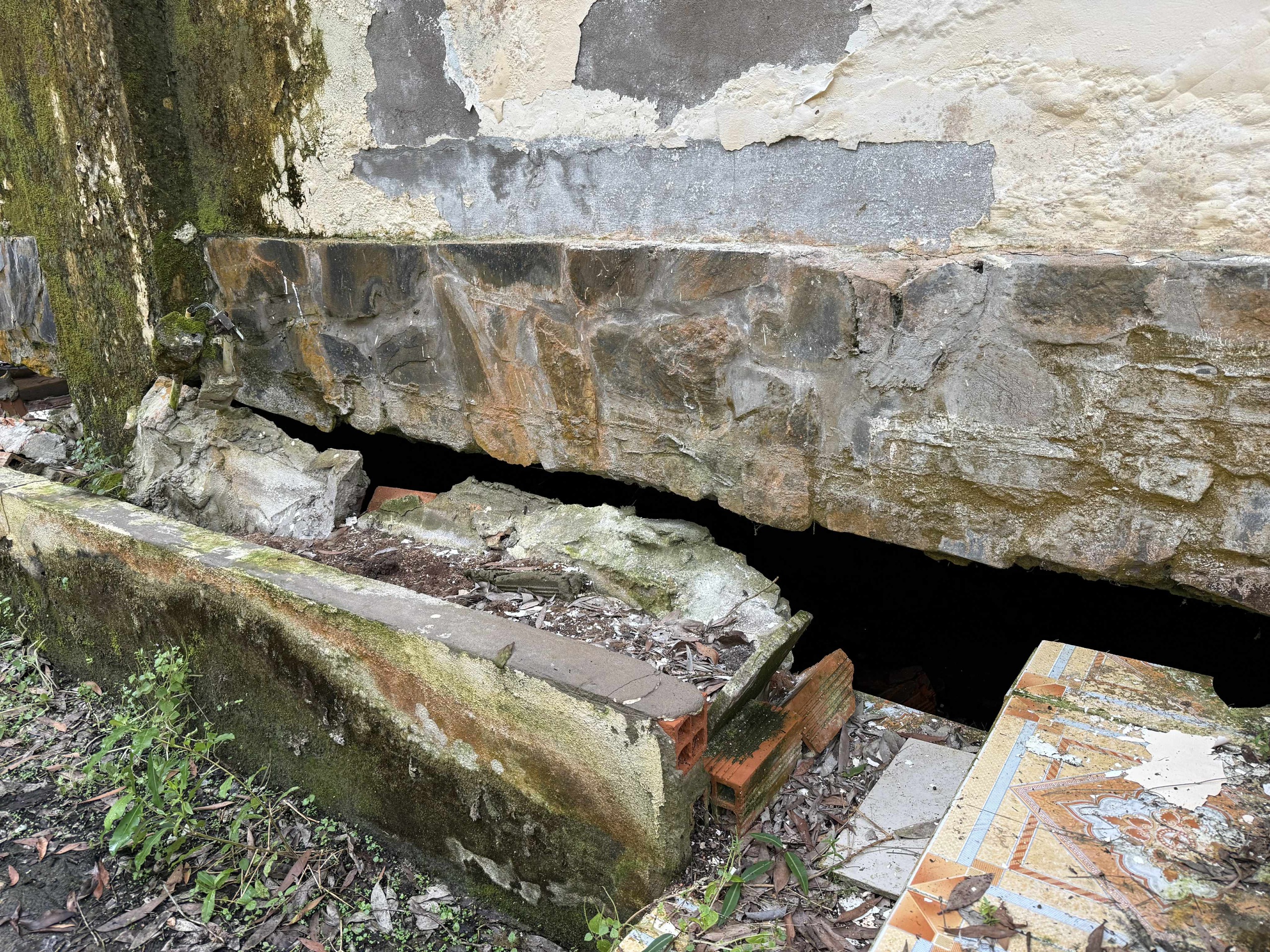 Nhiều chỗ móng các hạng mục trong Khu căn cứ Tỉnh ủy Sóc Trăng bị sụp lún - Ảnh: KHẮC TÂM