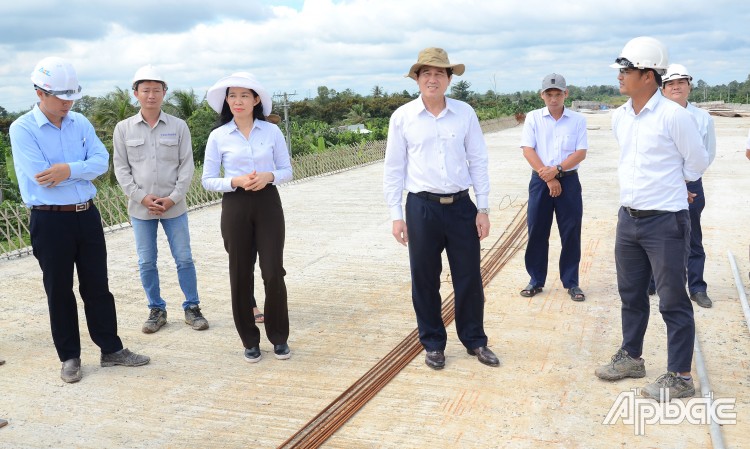 Đồng chí Lê Văn Hưởng kiểm tra tiến độ cầu Nguyễn Văn Tiếp.