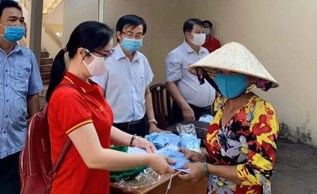 Thường trực Ủy ban MTTQ Việt Nam tỉnh Kiên Giang và cán bộ, nhân viên Công ty Xổ số kiến thiết Kiên Giang đến xã Kiên Bình, huyện Kiên Lương phát tiền hỗ trợ người bán vé số.