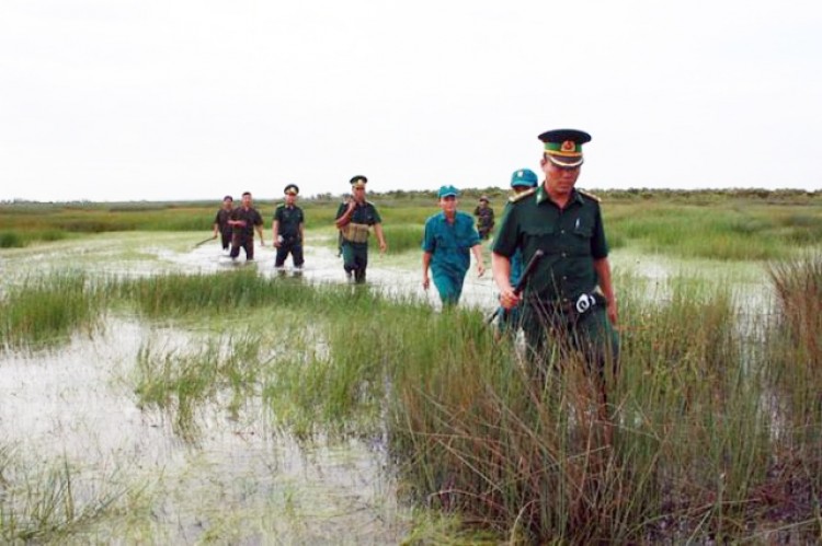 Các chiến sĩ biên phòng tuần tra, kiểm soát trên tuyến biên giới Hà Tiên - Kiên Giang. (Ảnh QT)