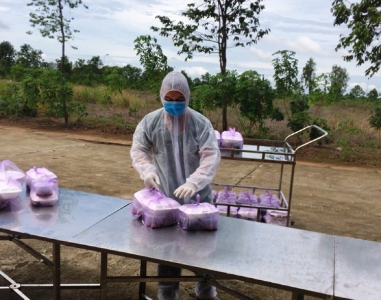 Chuẩn bị bữa ăn cho người dân trong khu cách ly. Ảnh: NGỌC TRÂM.