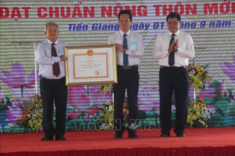 Thứ trưởng Bộ Nông nghiệp và Phát triển nông thôn Trần Thanh Nam trao Quyết định của Thủ tướng Chính phủ công nhận huyện Gò Công Đông, tỉnh Tiền Giang đạt chuẩn nông thôn mới ngày 1-9.