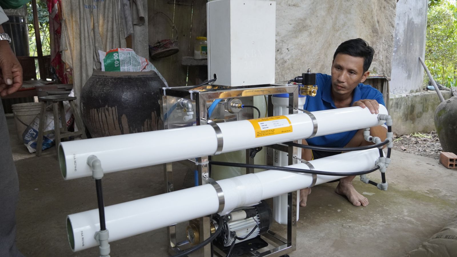 Nhiều người dân tại xã có điều kiện, đầu tư máy lọc nước mặn, chi phí mỗi máy 80 triệu đồng; công suất lọc bốn giờ một mét khối