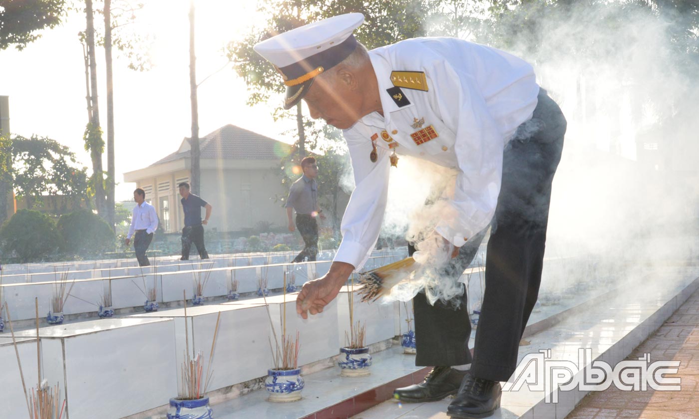 Các cựu chiến binh thắp hương cho đồng chí, đồng đội đã ngã xuống vì độc lập dân tộc.