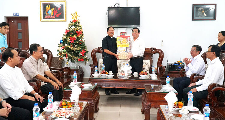 Trao quà của Thành ủy, HĐND, UBND, Ủy ban MTTQVN thành phố tặng các vị linh mục và chức sắc tại các nơi đến, ông Trần Văn Huyến chúc linh mục, chức sắc, đồng bào giáo dân thành phố nói chung, ở các giáo xứ nói riêng đón mùa Giáng sinh 2025 ấm áp, an lành và hạnh phúc.