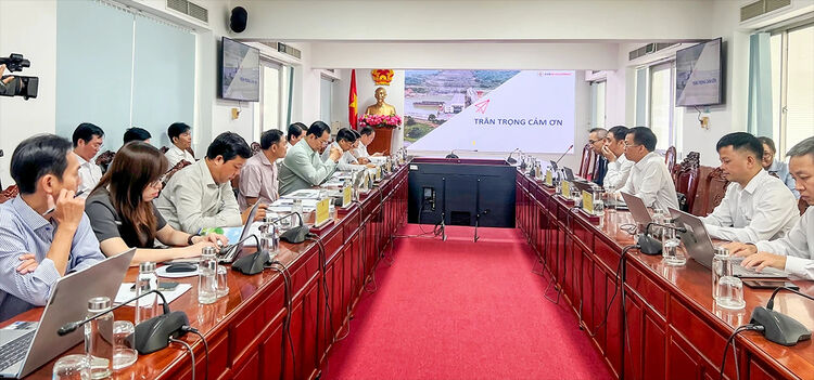 Đại diện Công ty CP Tập đoàn Sao Mai trình bày Dự án Nhà máy điện mặt trời Sao Mai 1 tại buổi làm việc.