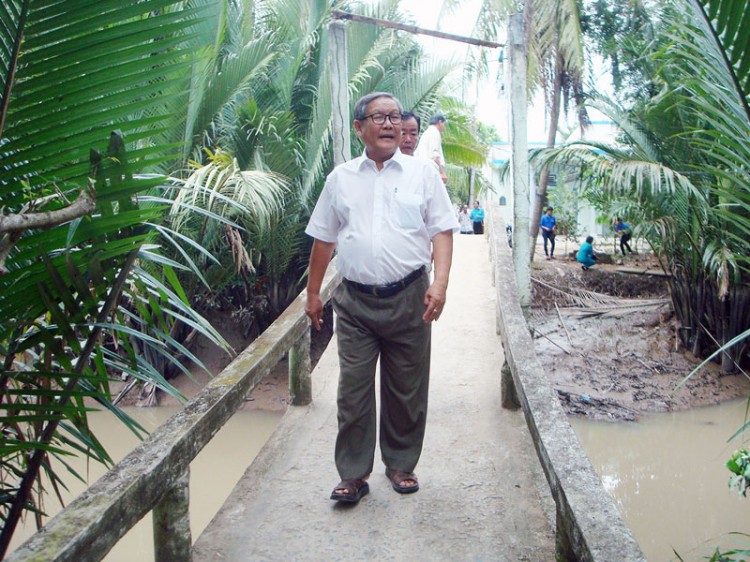 Ông Trịnh Văn Y trong một lần đi khảo sát cầu ở xã Thành Thới B, huyện Mỏ Cày Nam. Ảnh: Ánh Nguyệt