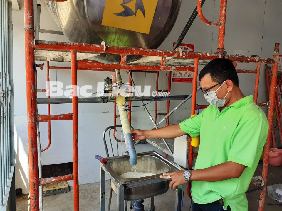 Vận hành thử nghiệm máy “ATM gạo” tại Hội Chữ thập đỏ TP. Bạc Liêu. Ảnh: T.Q