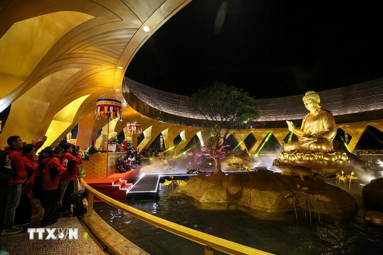 Trong khuôn khổ buổi lễ, nhiều nghi thức Phật giáo trang trọng được cử hành, cùng lễ dâng hoa đăng thiêng liêng nhằm lan tỏa năng lượng thiện lành, hồi hướng cho thế giới hòa bình, chúng sinh an lạc, tạo nên khoảnh khắc linh thiêng trên đỉnh núi thiêng huyền thoại.