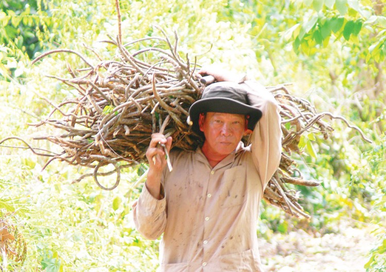 Muốn lấy được nguồn dược liệu, “đội quân” hái thuốc phải leo trèo lên ngọn cây cổ thụ cao, chặt từng đoạn đem xuống. Anh Nguyễn Văn Ấm (40 tuổi) được mệnh danh là “vượn rừng”, bởi có biệt tài leo cây hái thuốc rất “cự phách”.