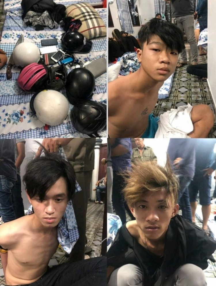 Từ lời khai của những nghi phạm này, công an kiểm tra một khách sạn, bắt giữ 8 thanh niên, trong đó có 6 cô gái là bạn gái của những thanh niên trên cũng có mặt ở khách sạn.