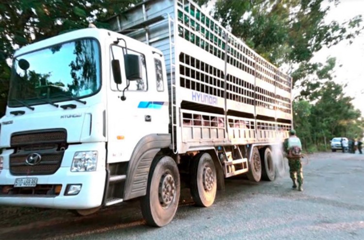 Phun xịt thuốc khử trùng xe vận chuyển heo nhập lậu
