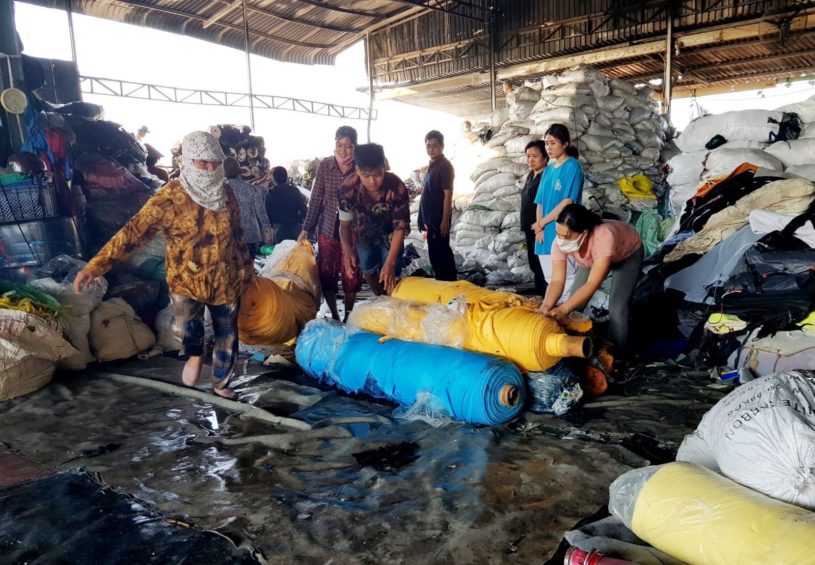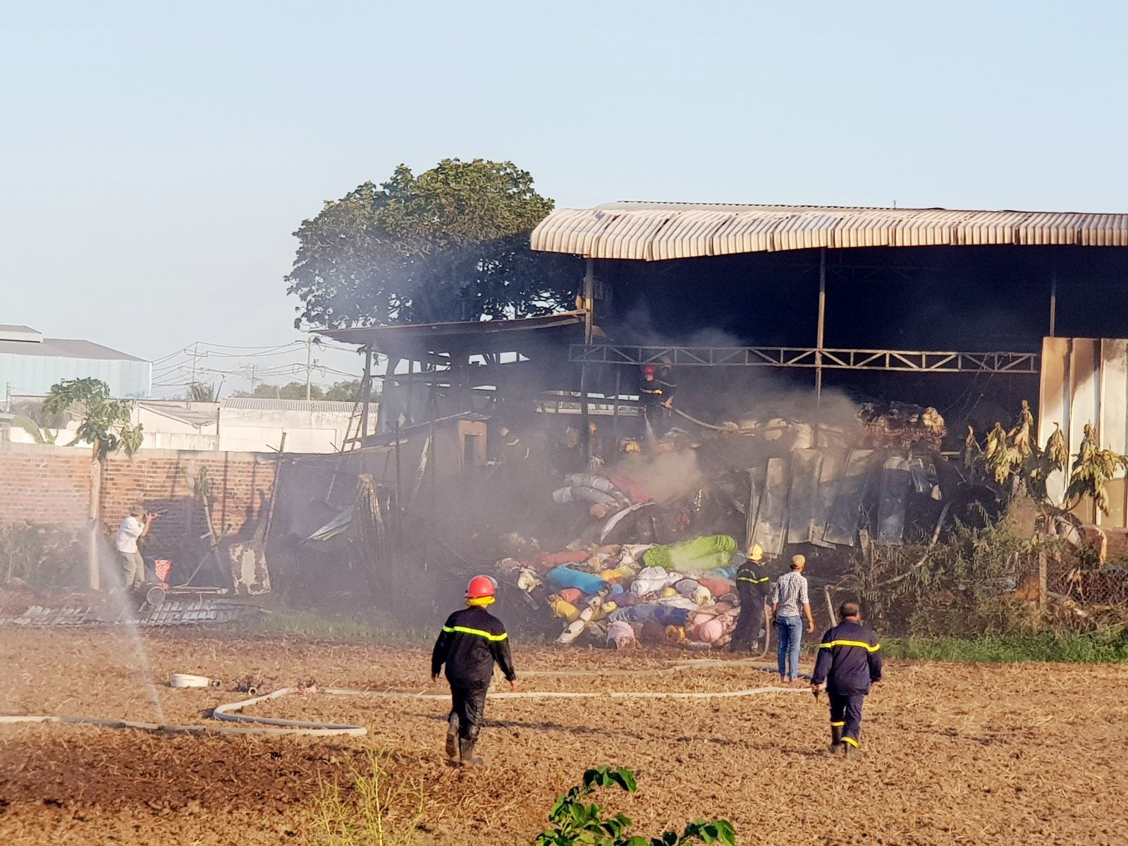 Đến 17 giờ 30 phút, đám cháy được lực lượng Cảnh sát Phòng cháy chữa cháy khống chế hoàn toàn. Tại hiện trường, nhiều tài sản như vải cuộn, một phần kho chứa phế liệu bị thiêu rụi.
