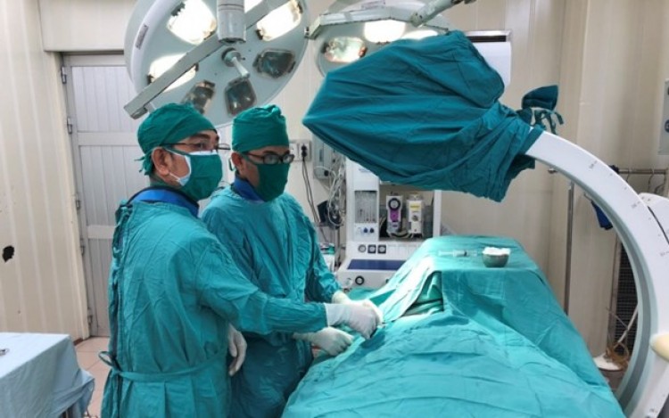 Các bác sỹ Bệnh viện đa khoa Long An thực hiện phẫu thuật đặt máy tạo nhịp cho bệnh nhân H.