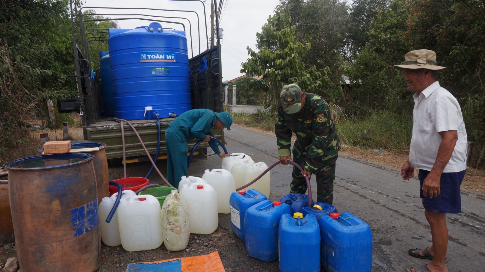 Người dân nhận nước do bộ đội cấp