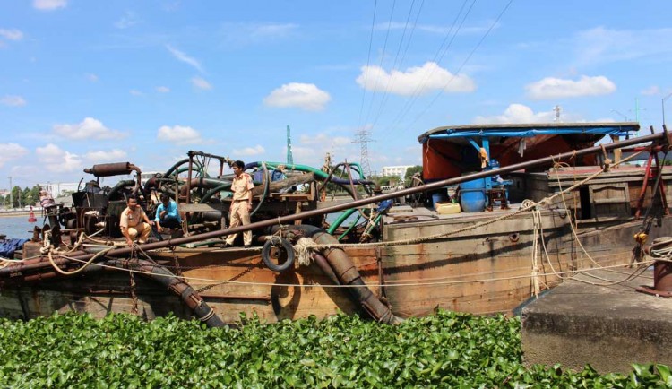 Lực lượng Cảnh sát đường thủy phát hiện ghe của ông Tuấn bơm hút cát trái phép