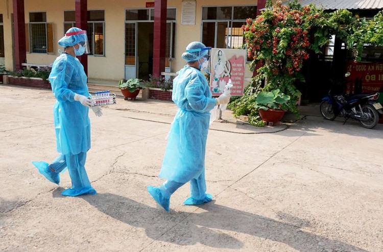 Lấy mẫu xét nghiệm cho các trường hợp cách ly. Ảnh: baolongan.vn