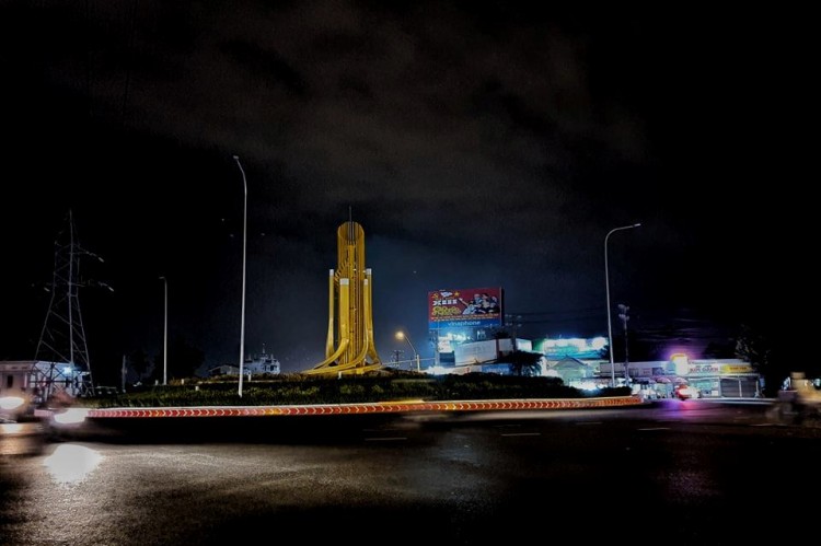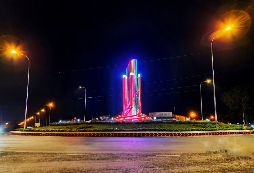 Khu vực vòng xoay Nghĩa trang Liệt sỹ tỉnh mới được đầu tư đồng bộ về biểu tượng và hệ thống chiếu sáng (Hình được chụp lúc hệ thống đèn còn hoạt động)