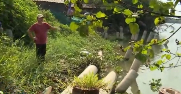 Bà Lương Thị Mộng Trầm, ngụ ấp Đạo Thạnh, xã Hướng Thọ Phú, cho biết: “Hơn 2 năm trước, từ bờ đường đi đến mép sông khoảng 20m, gia đình tôi đã xây dựng 4 dãy chuồng nuôi heo. Hiện nước xoáy cuốn trôi gần một nửa diện tích chuồng trại”.