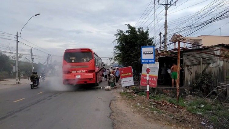Khi xe đang đi đến đoạn đối diện Công an xã Lợi Bình Nhơn, TP Tân An, tỉnh Long An thì tài xế cùng nhiều hành khách phát hiện phía sau hầm máy có nhiều khói cuồn cuộn bốc lên.