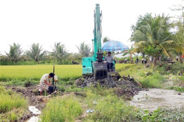 Nạo vét kinh thủy lợi nội đồng, củng cố bờ bao ngăn mặn.