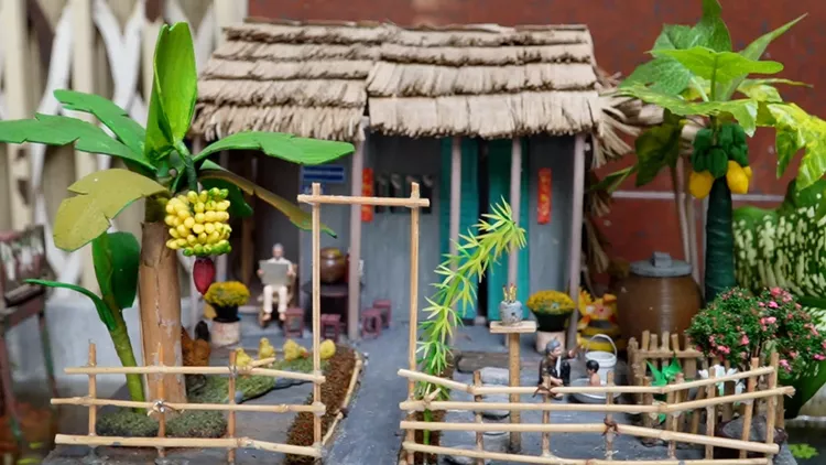 Đến nay, chị Phúc đã làm hơn 20 mô hình lớn nhỏ. Những căn nhà chỉ bằng bàn tay nhưng bên trong là cả không gian sống của một thời: có bàn thờ tổ tiên, mâm cơm đạm bạc, chiếc đài cũ phát nhạc Bolero, ông bà ngồi uống trà dưới hiên nhà… Tất cả đều được chị chăm chút đến từng chi tiết.