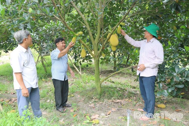 Việc áp dụng các kỹ thuật mới trong trồng mít đã giúp nhiều nông dân ở ấp Mỹ An 3, xã Tháp Mười nâng cao chất lượng trái, góp phần tăng hiệu quả sản xuất. Ảnh: MỸ XUYÊN
