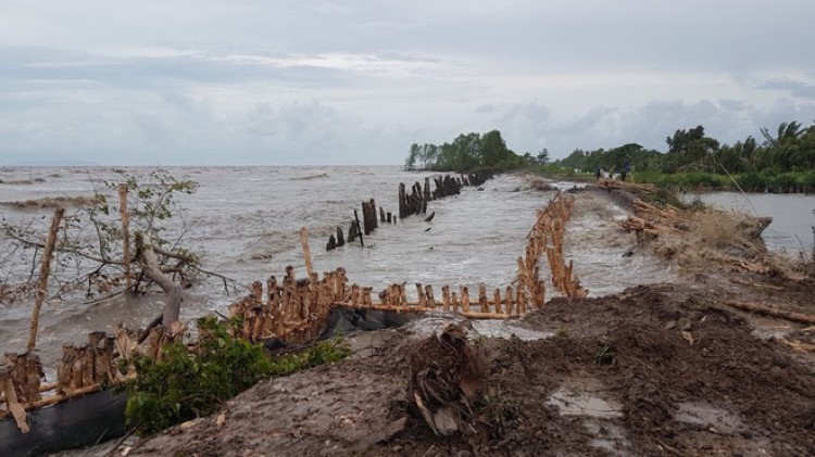 Tại hiện trường, đoạn đê thứ 1 bị sạt lở dài khoảng 20 m, rộng 10 m, toàn bộ bờ đê bị nước biển cuốn trôi. Đoạn đê thứ 2 bị sạt lở có chiều dài khoảng 50 m, rộng 9 m.