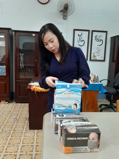 Trường Tiểu học Trần Đại Nghĩa chuẩn bị khẩu trang phát cho học sinh vô trường mà quên đeo khẩu trang.