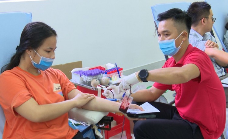 Hiến máu tình nguyện ở Ngày hội hiến máu “Sắc đỏ Tây Đô”.