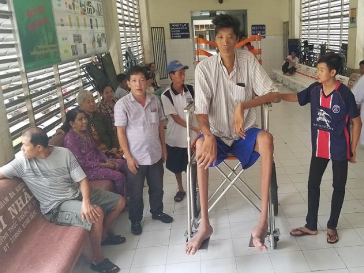 Phương pháp khảo sát được phóng viên PLO thực hiện là để anh Trung nằm thẳng trên chiếc giường dài 2,6 m, chỉ thiếu từ chừng 5 cm nữa là gót chân anh Trung đã bằng với chiều dài chiếc giường này.