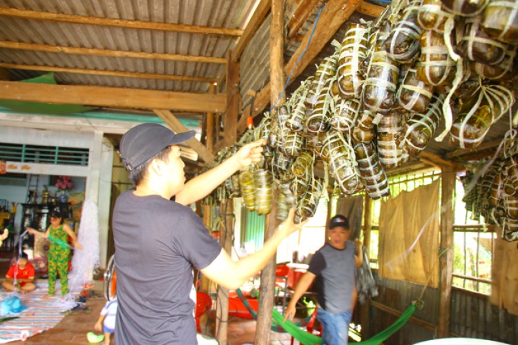 Theo chị Đặng Thị Ngọc Giàu, ban đầu, gia đình chị chỉ dự định gói 200 - 300 đòn bánh cứu trợ. Tuy nhiên, thấy việc làm ý nghĩa này, người dân trong xã và các địa phương lân cận chung tay đóng góp nếp, thịt, đậu... để gói thêm nhiều bánh hơn. Đến nay, số lượng bánh tét dự kiến là khoảng 800 đòn cùng các nhu yếu phẩm như: mì gói, sữa, nem...