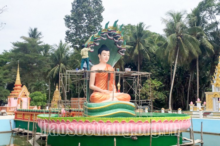 Trong những ngày cận lễ Sene Đôn Ta cổ truyền của đồng bào Khmer, chúng tôi tìm đến ngôi chùa Prêk Pinh Tôn, thuộc xã Phú Mỹ (Mỹ Tú) - nơi nghệ nhân Lý Phương đang miệt mài khắc họa pho tượng Đức Phật ngự thiền dưới sự che chở của rắn thần Naga trong Srắs Machalinda (Ao Machalinda).