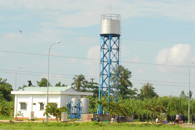 Nước sạch, hợp vệ sinh đã được lắp đặt và kéo về tận vùng nông thôn ở TP Cần Thơ, không để người dân thiếu nước sinh hoạt do hạn hán, XNM. Trong ảnh: Trạm cung cấp nước sạch tại xã Mỹ Khánh.