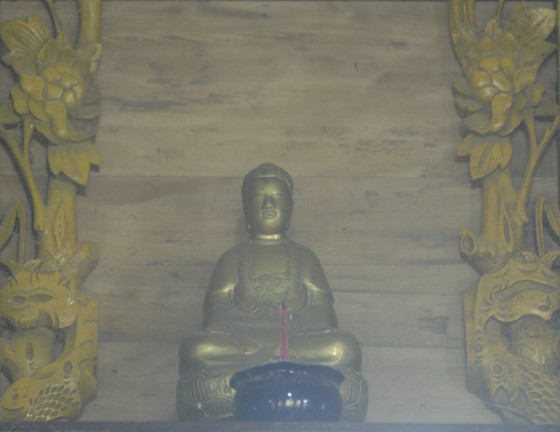 Tượng phật này có niên đại trên 300 năm được đặt trên cao, chính diện của gian nhà