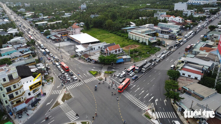 Dòng xe từ cao tốc TP. Hồ Chí Minh - Trung Lương đổ về hướng ngã tư Đồng Tâm