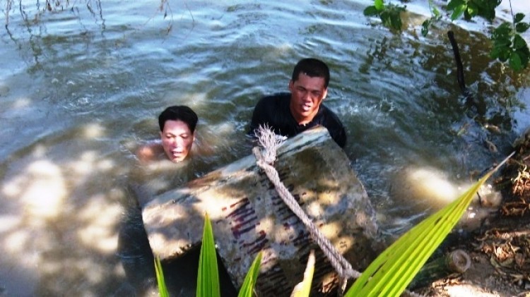 Do các thùng rác bị chìm trong nước nên các bao bì và chai lọ thuốc bảo vệ thực vật hòa vào nước trôi khắp nơi, nguy cơ ô nhiễm môi trường nghiêm trọng. Tối 23-2, Chủ tịch UBND xã Mỹ Đông, Nguyễn Thanh Hòa cho biết, chính ông cùng các cán bộ, công chức và người dân trên địa bàn xã Mỹ Đông đã đến mò và kéo các thùng chứa rác bảo vệ thực vật lên bờ.