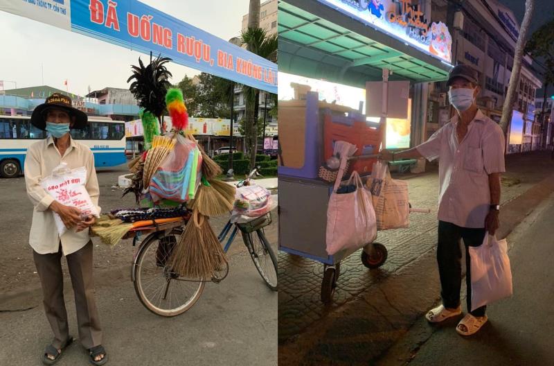 Để chia sẻ khó khăn, chị Huỳnh Thị Thanh Dung (chủ một cửa hàng thời trang ở Cần Thơ) cũng dành hơn 120 phần quà và 200 kg gạo để trao cho những người bán vé số.