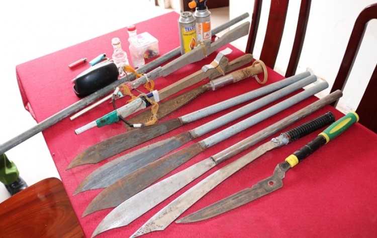 Tại đây, có 3 thanh niên gồm: Nguyễn Hồng Ân (31 tuổi), Danh Hoàng Thắng (20 tuổi) và Dương Thái Thành (27 tuổi) có biểu hiện đã sử dụng ma túy. Quá trình kiểm tra, lực lượng chức năng phát hiện nhiều dụng cụ dùng sử dụng ma túy, 7 dao tự chế, tuýp sắt, 2 súng tự chế.