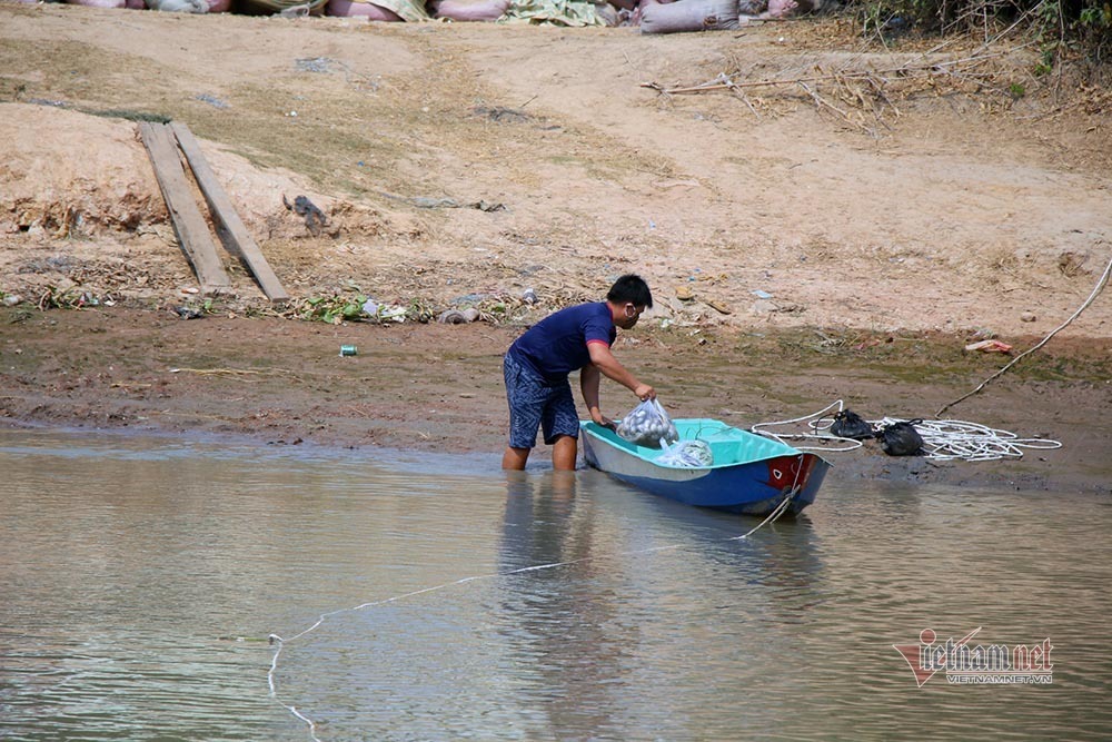 Để ngăn chặn dịch Covid-19, việc trao đổi hàng hoá được người dân thực hiện bằng cách vận chuyển dùng dây kéo thuyền sang sông