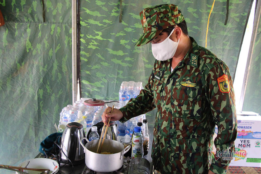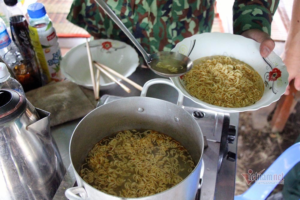 "Trong quá trình tuần tra xa đơn vị, anh em phải chủ động bữa ăn; thức ăn chính là mì gói, chúng tôi phải ăn cấp tốc còn làm nhiệm vụ, đảm bảo tốt công việc trực biên giới", Đại uý Mạnh nói