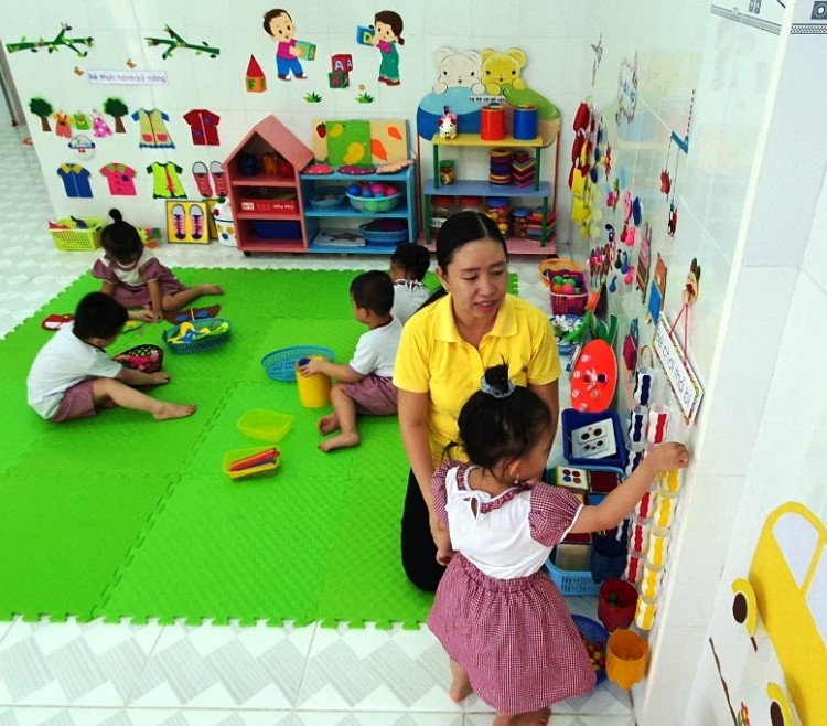 Giờ hoạt động góc của các bé Trường Mầm non 2 tháng 9, quận Ninh Kiều. ảnh: B.NG