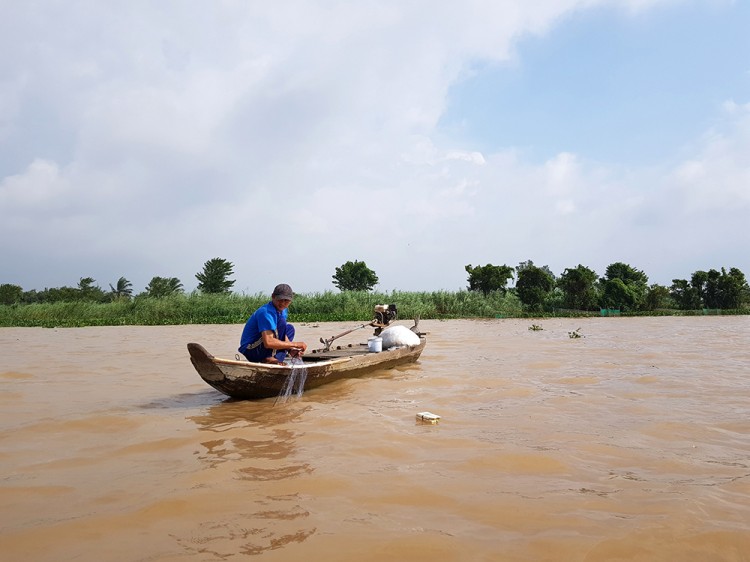 Anh Dương Văn Lâm giăng lưới cá chạch phía trên sông Vàm Nao