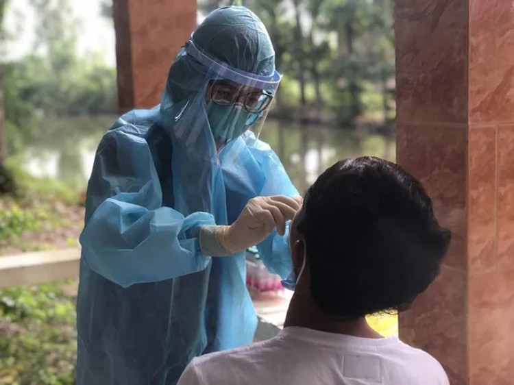 Nhân viên y tế tỉnh Đồng Tháp lấy mẫu xét nghiệm đối với công dân về từ Indonesia