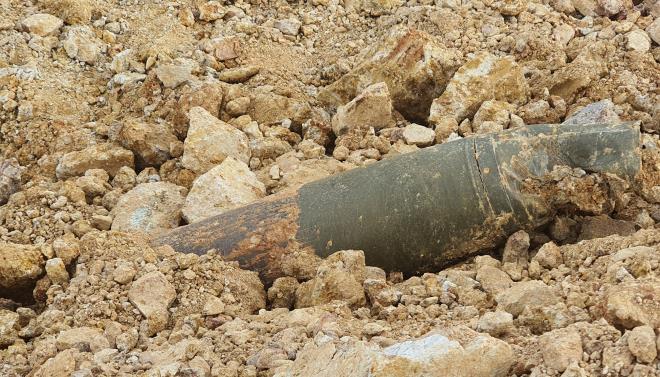 Theo thông tin ban đầu, trong quá trình thi công hồ chứa nước ngọt tại phường Pháo Đài (TP Hà Tiên) các công nhân phát hiện quả bom nằm sâu dưới lòng đất.