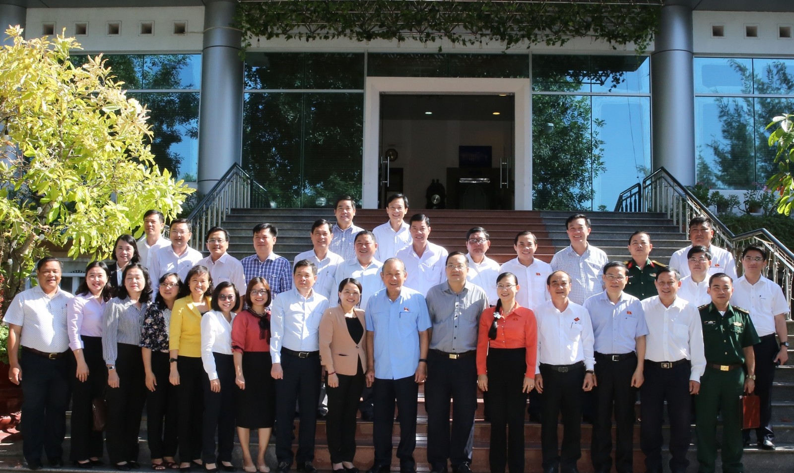 Phó Thủ tướng Thường trực Chính phủ Trương Hòa Bình và thành viên Đoàn ĐBQH tỉnh Long An. Ảnh: VGP/Mạnh Hùng