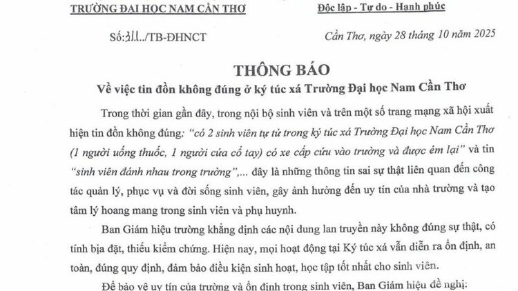 Để bảo vệ uy tín của trường và ổn định trong sinh viên, Ban Giám hiệu đề nghị: Sinh viên cần bình tĩnh, sáng suốt khi tiếp nhận thông tin trên mạng xã hội; không chia sẻ, bình luận hoặc lan truyền những nội dung chưa được kiểm chứng.