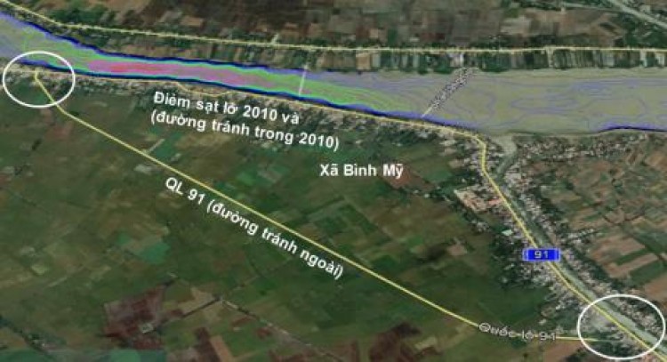 Sạt lở ở Bình Mỹ xảy ra rạng sáng ngày 01.08.2019. Chỉ vài giờ sau lưu thông đường bộ từ Long Xuyên đến Châu Đốc được tái lập. Thì ra đó là nhờ có đường tránh bên ngoài được xây dựng sau lần sạt lở năm 2010. Rất tiếc đường tránh này chưa hoàn tất vì hai đầu nối vào QL 91 bị đình trệ trong các năm qua. Hình 3,4.